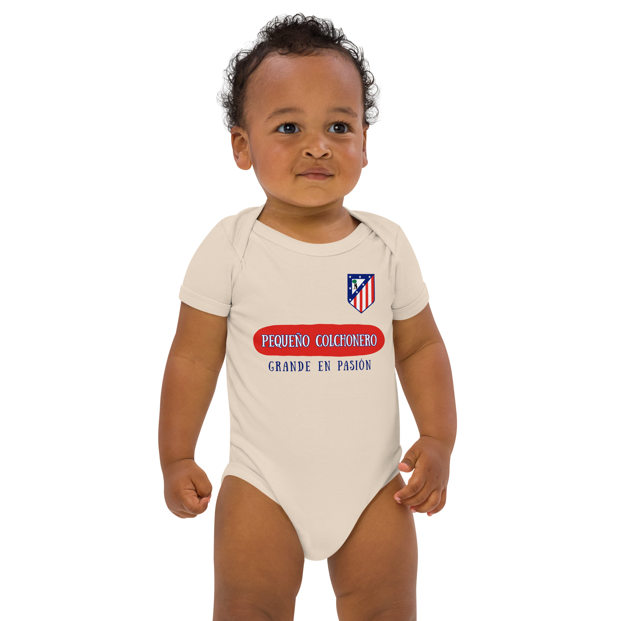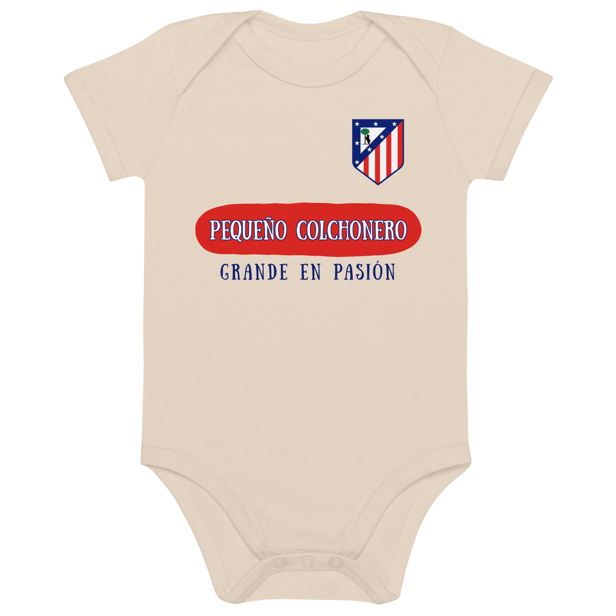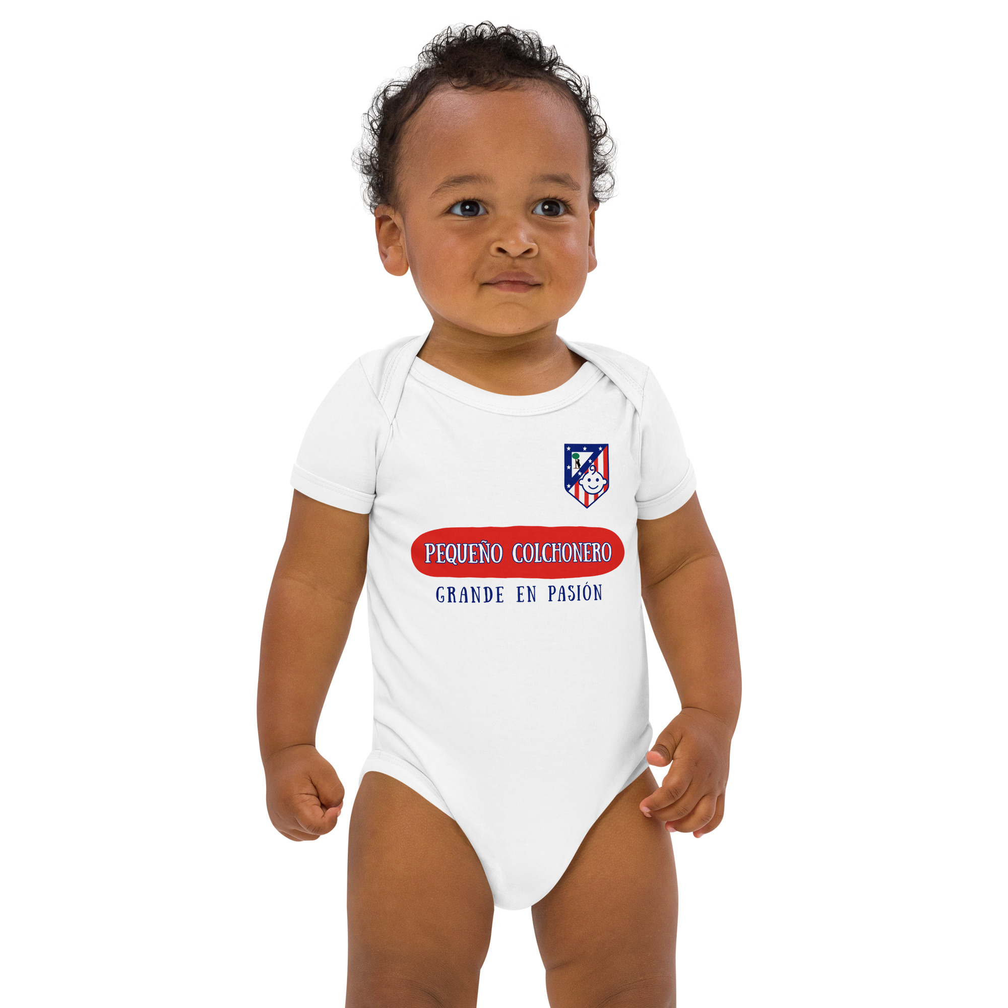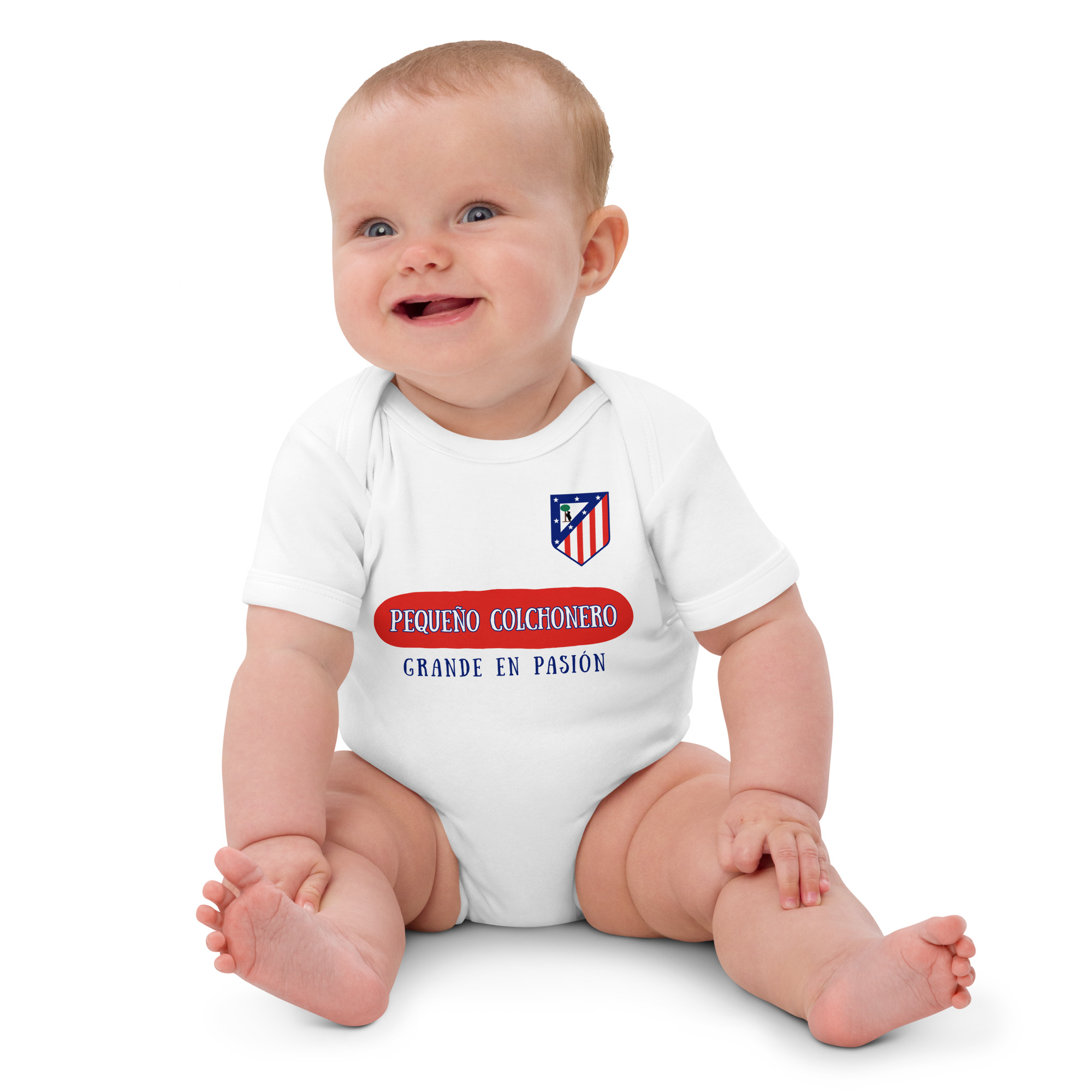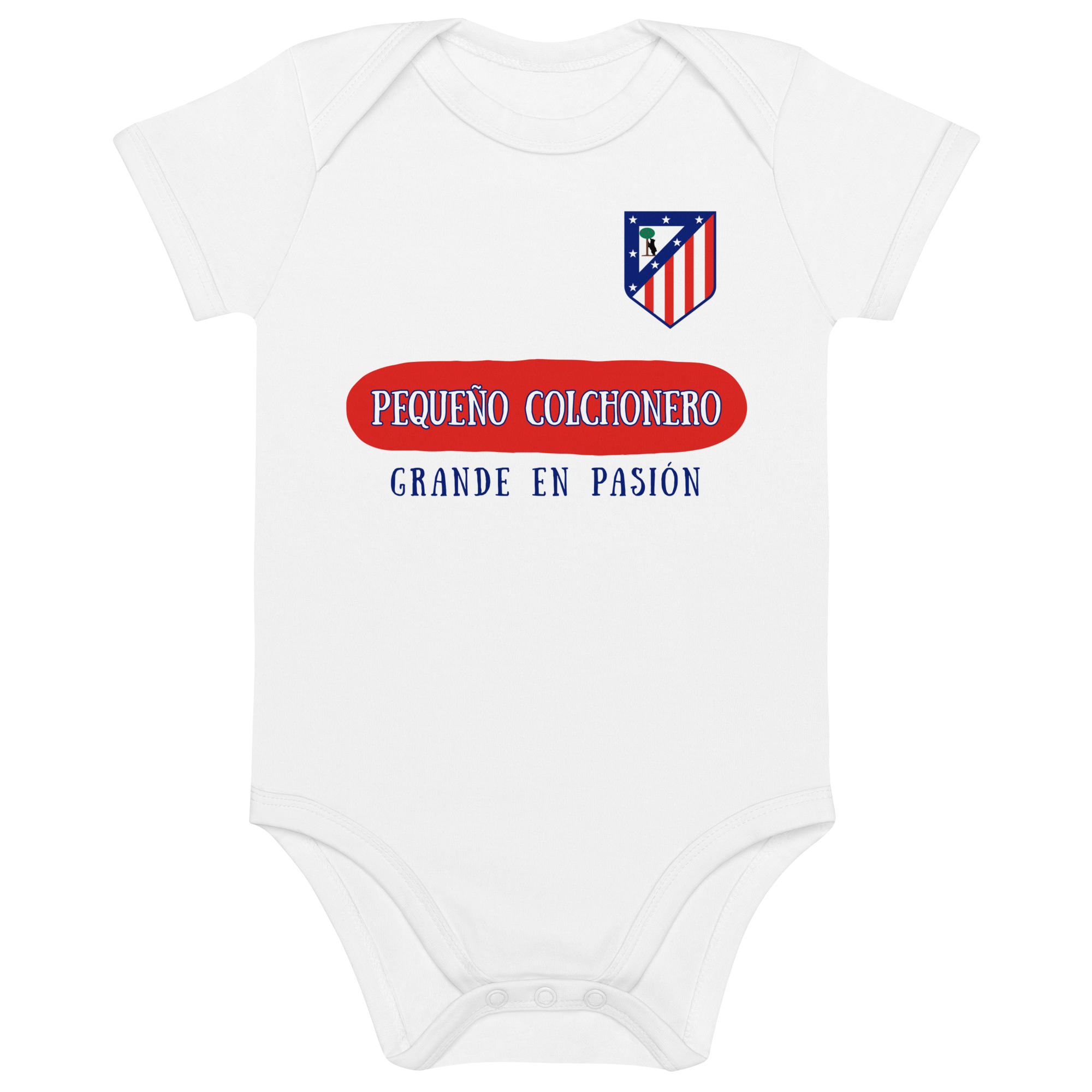 Si el Atleti forma parte de tu vida, este body es el primer paso para que tu bebé también viva la pasión rojiblanca. Con la frase “Pequeño colchonero, grande en pasión”, tu peque mostrará desde la cuna que el sentimiento atlético se hereda. ¡Ideal para los días de partido y para presumir de orgullo colchonero en cualquier ocasión!