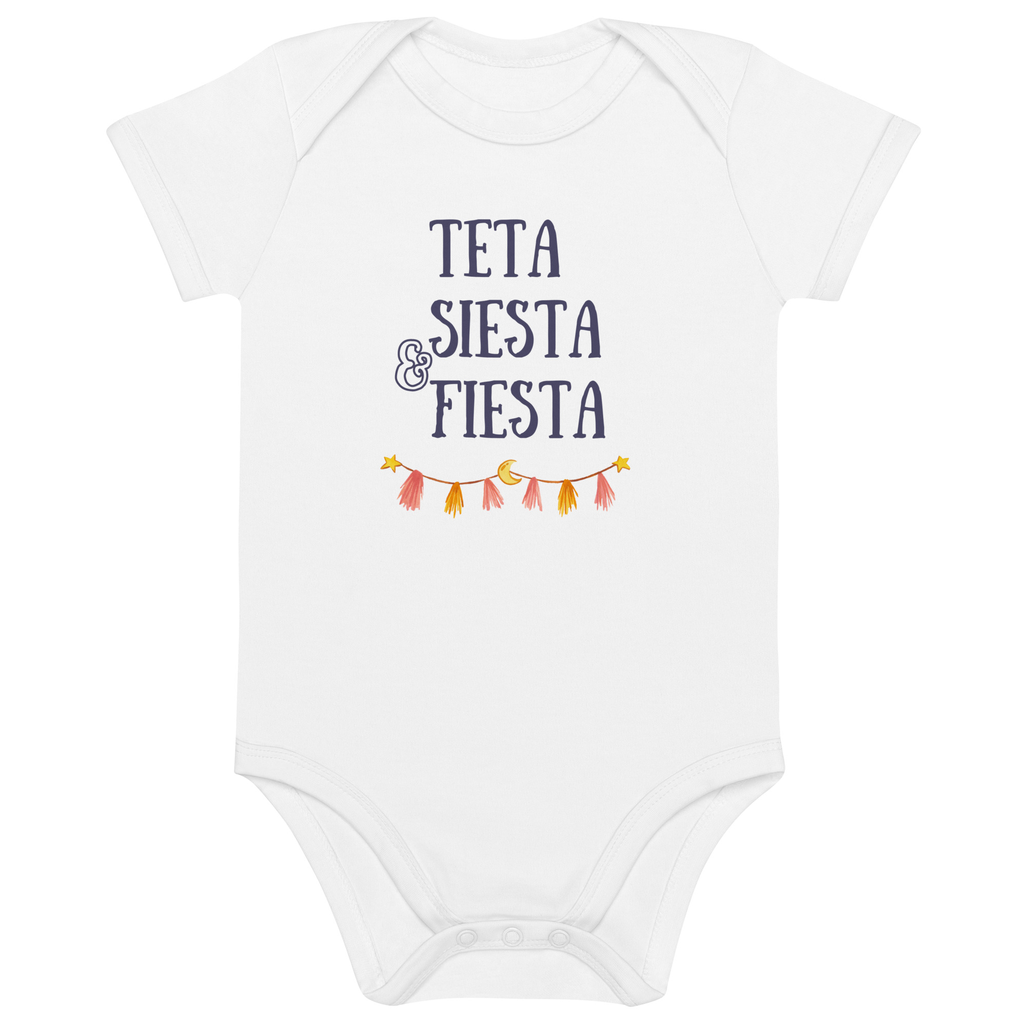 No se necesita mucho para ser feliz cuando eres bebé: un poco de leche, una buena siesta… ¡y mucha fiesta! Este body de bebé gracioso resume a la perfección la filosofía de vida de los más peques: comer, dormir y disfrutar al máximo (¡en ese orden!). Perfecto para regalar a recién nacidos, para sesiones de fotos divertidas o simplemente para que tu bebé luzca con actitud desde el primer día.
