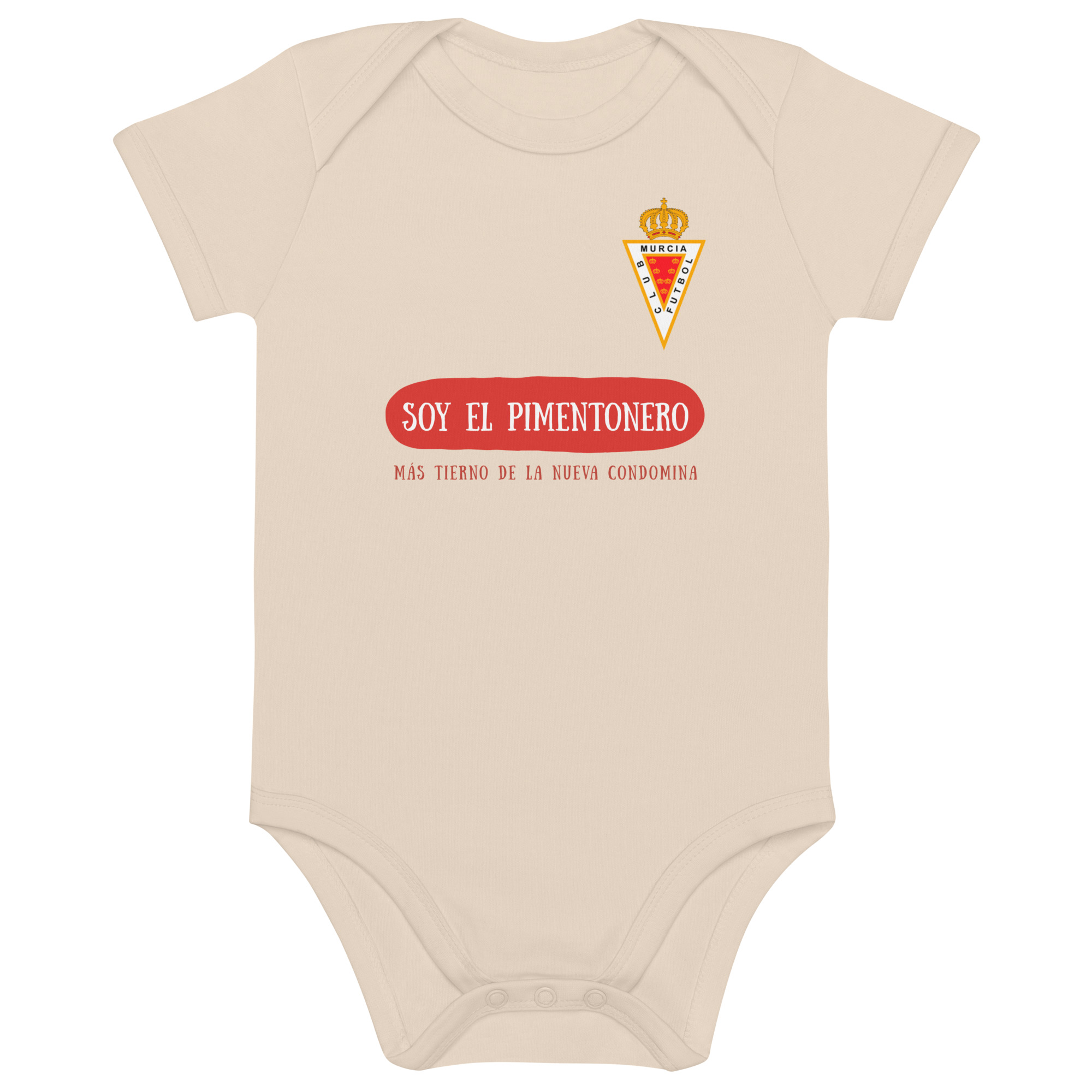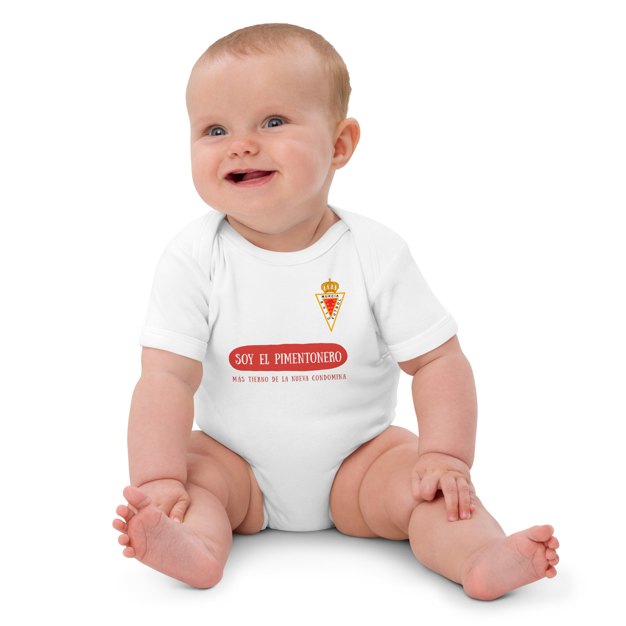 Este body no es solo una prenda de vestir, sino una declaración de amor por el Real Murcia y por la historia del equipo. Un regalo único para cualquier familia murciana, que quiera que su bebé se convierta en el pimentonero más tierno y orgulloso de la Nueva Condomina.
